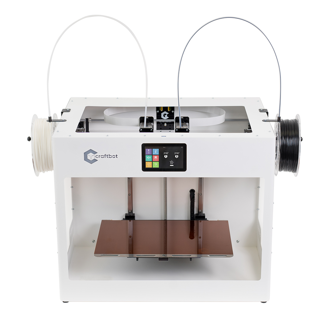 The Craftbot Flow Idex machine is equipped with two independent print heads. This allows for printing bicolor parts or printing two different materials. Additionally, the two heads can be used in synchronization mode to print two identical parts simultaneously. This printer is ideal for printing complex parts or parts where it may be difficult to remove supports in a traditional manner. With its oversized X-axis, this machine allows for printing long parts.
